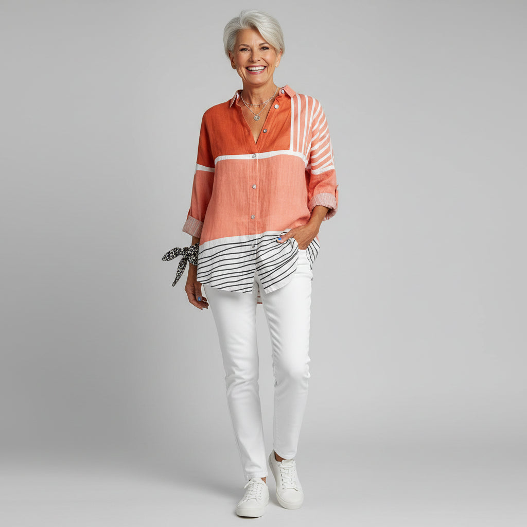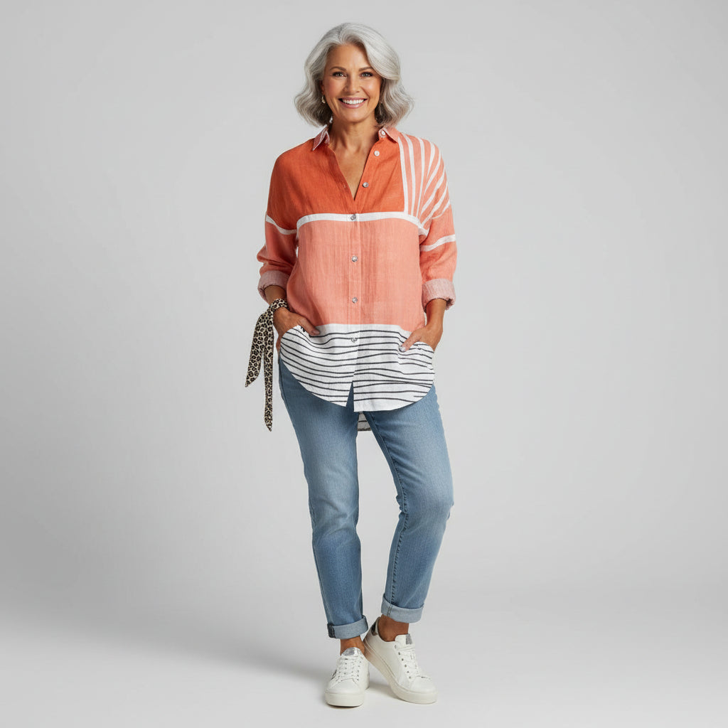 Mila | Damska Koszula Z Długim Rękawem W Kwiaty