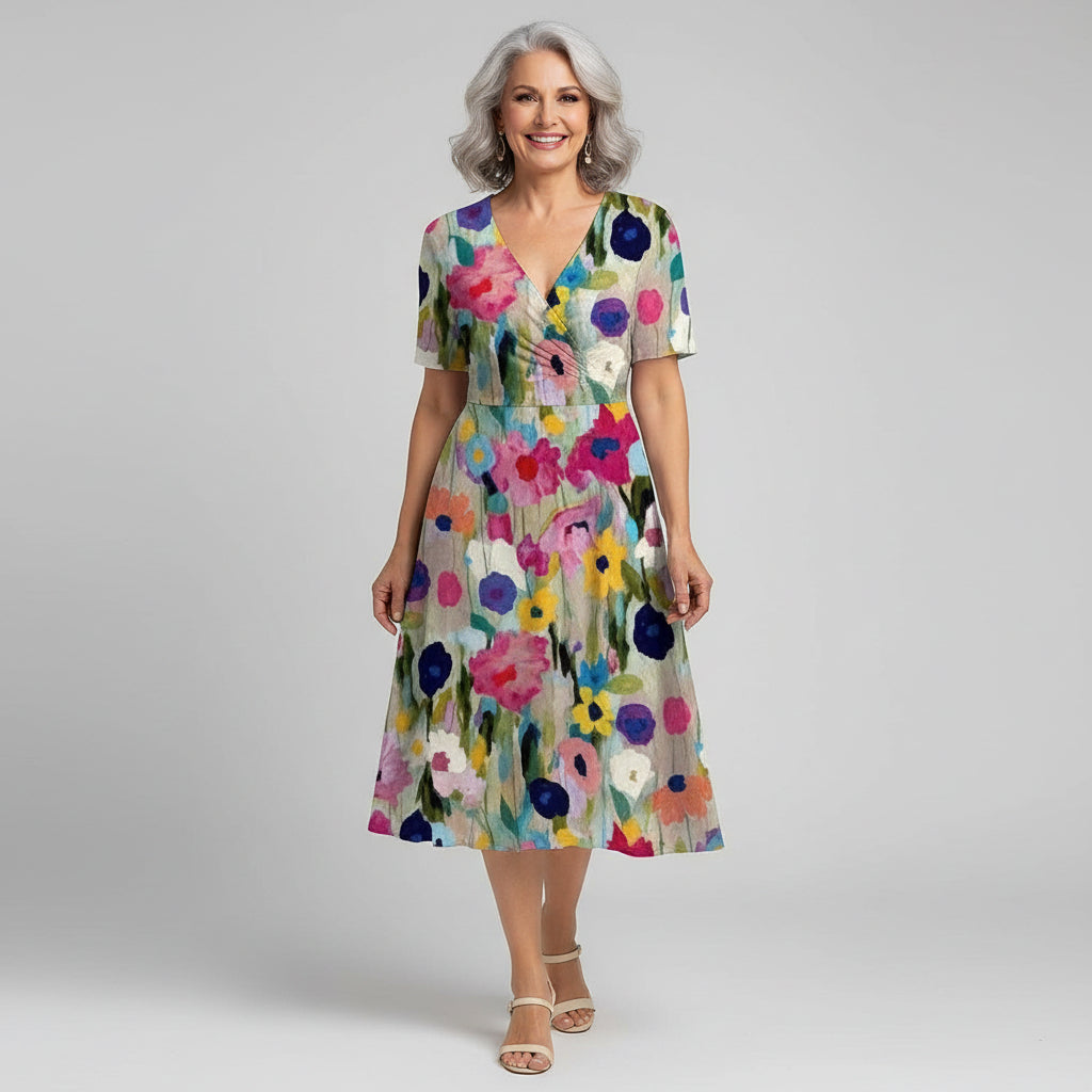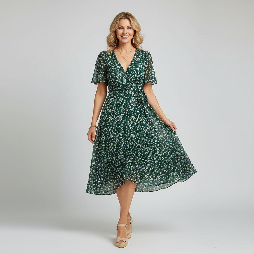 Selene | Damska Stylowa Sukienka Midi w Kwiaty
